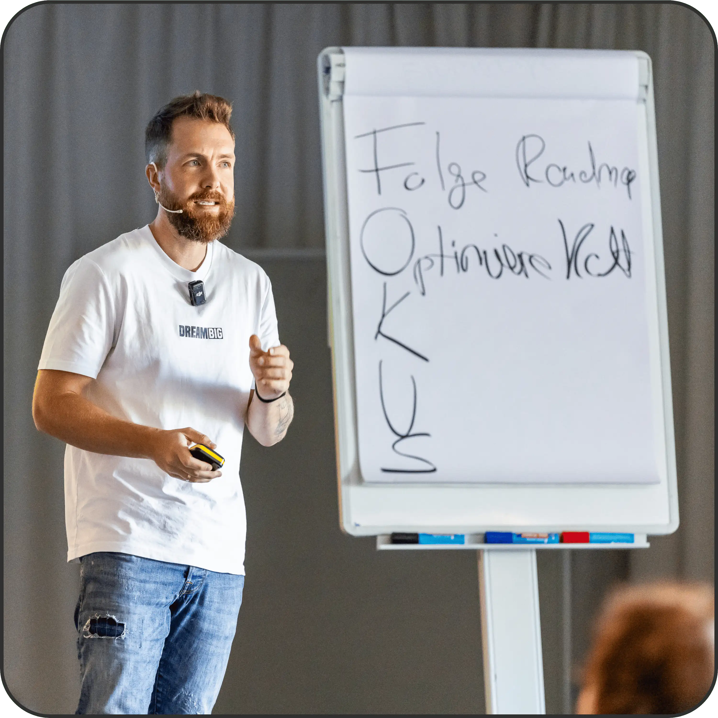Nicht irgendein Vortrag und auch nicht einfach ein paar Slides mit einem Pitch am Ende. Sondern ein System, das Menschen Schritt für Schritt durch einen klaren Prozess führt. Von Aufmerksamkeit zu Vertrauen und von Vertrauen zu einer echten Kaufentscheidung.